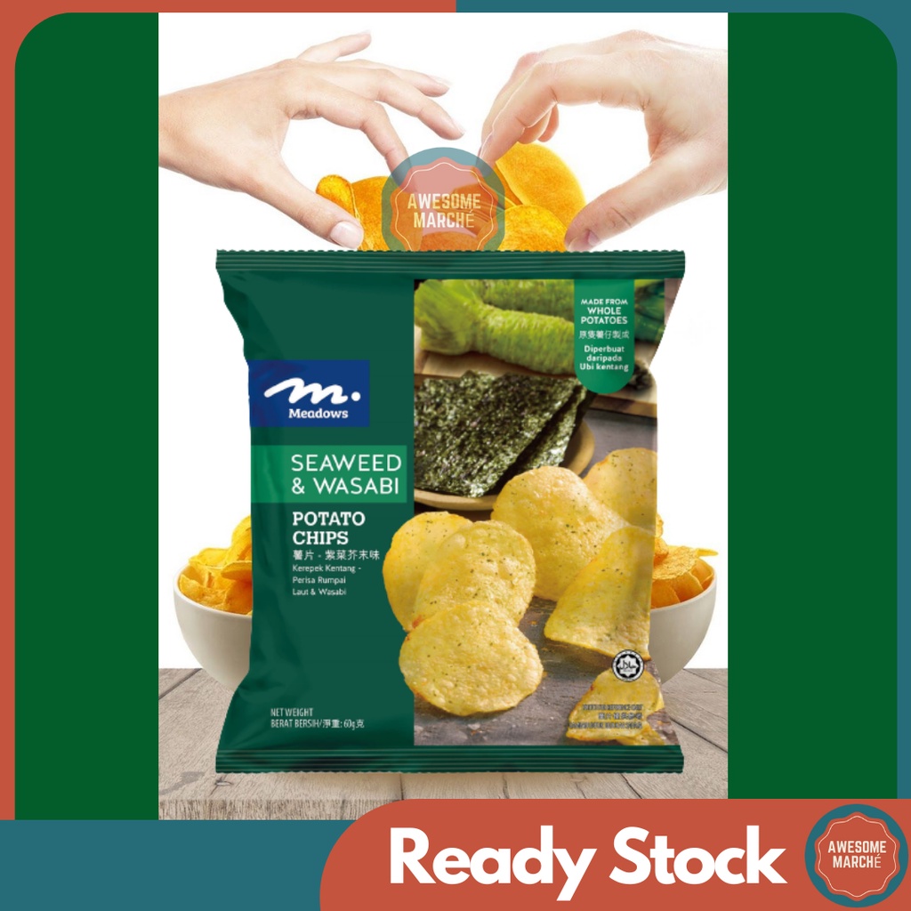 Meadows Wasabi Chips . To discover our complete range,. Our potatoes are carefully cultivated in fertile soil. meadows is one of the few brands that are cheap and good. I enjoy truffle truffle chips and occasionally buys from aroma. how exactly does a bona fide company survive on such a price tag for so long and become a cult favourite? Seaweed & wasabi (紫菜芥末味薯片) net weight (60g) halal certified. meadows seaweed wasabi potato chips, 60g order now and ship today/ tomorrow.**all potato chips will wrapped in bubble wrap & no extra charges.**meadows potato chips available in 2.